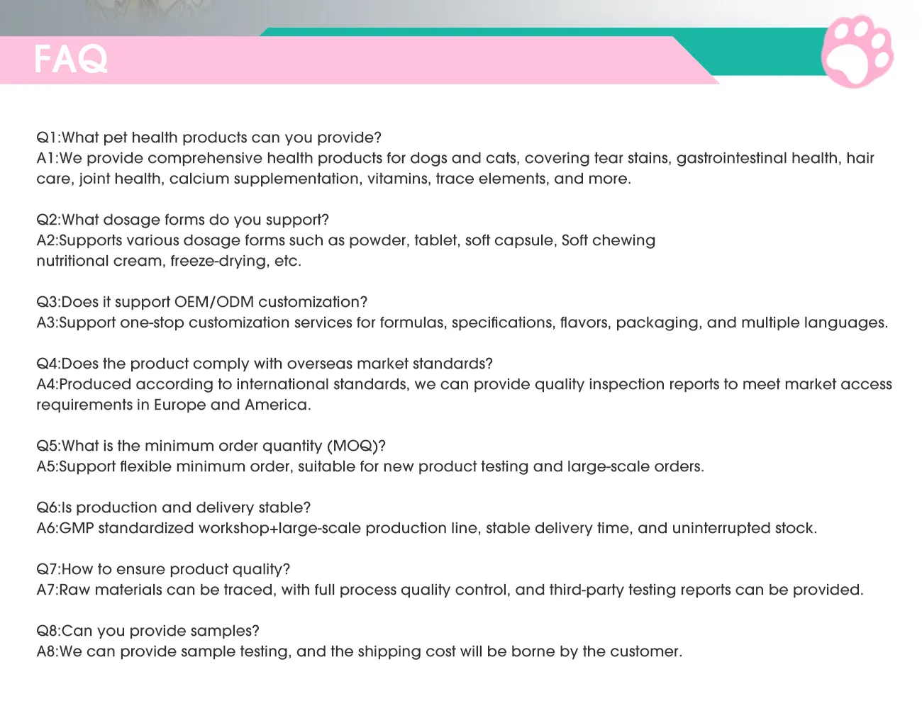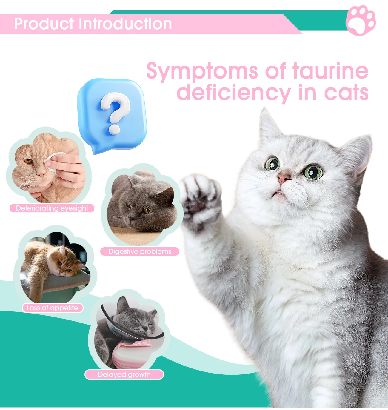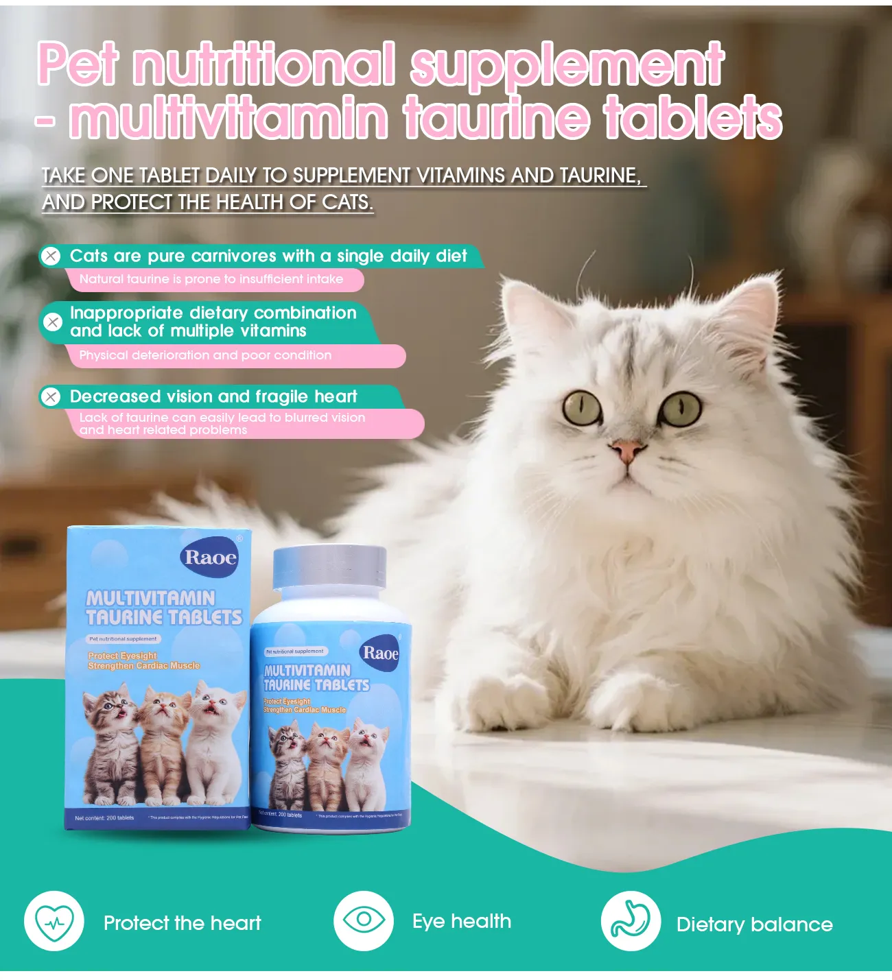 Taurine can regulate the retina function of cats, improve their vision, and maintain their activity; It is crucial for maintaining the normal reproductive function of cats, reducing stillbirths and miscarriages, and improving the survival rate of kittens; It participates in regulating the body’s immune system to maintain physical health.
